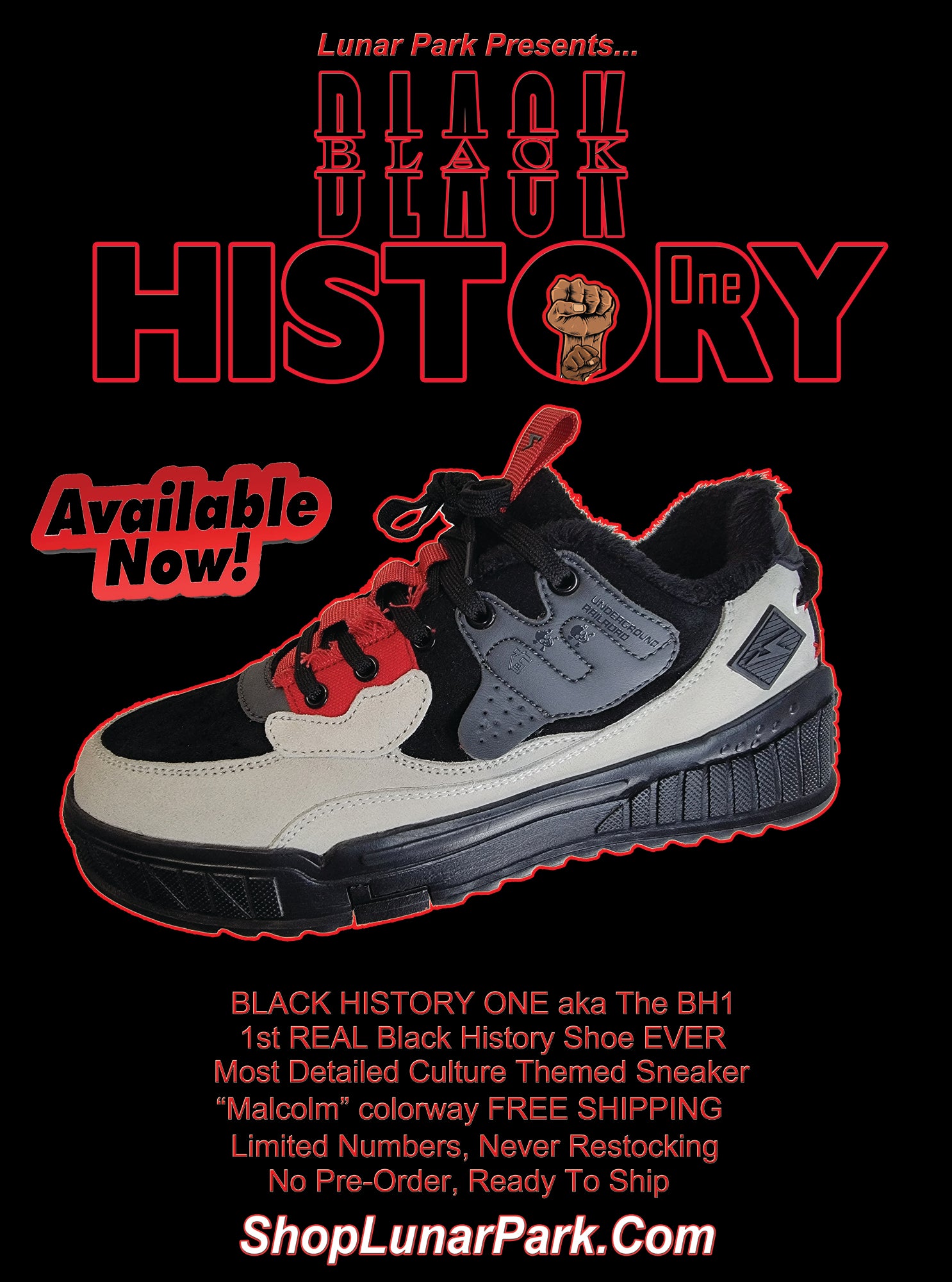 Washington State's 1st 100% Black Owned Original Sneaker Company, Lunar Park, proudly presents, the world's first REAL Black History Shoe: The Black History One.